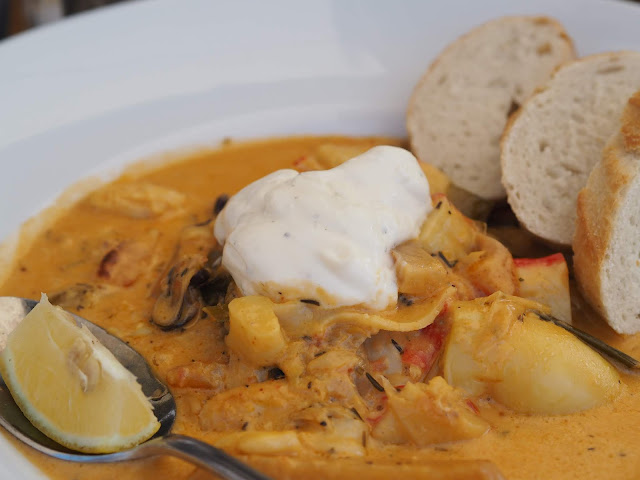 Laivamme Silja Europa oli vähän pettymys. Ainoat Ruotsinlaivat, joilla olen matkustanut viimeisten 25 vuoden aikana, ovat olleet Silja Symphony ja Serenade, joissa on ikkunat jopa kävelykannelle. Niinpä ikkunaton perhehyttimme oli masentava. Lisäksi verrattuna noihin samaisiin Tukholman laivoihin ravintolat olivat aikamoinen järkytys. À la carte -ravintolassa eli Grillissä alkupalat ja jälkiruoat seisovassa pöydässä olivat ihan hyvät, mutta pääruoaksi oli burgereita, lohta pestokastikkeella sekä pippuripihvejä, kaikkien kera tuli uppopaistetut ranskikset tai bataattiranskikset... Ei ihan odottamaani à la carte -tasoa!